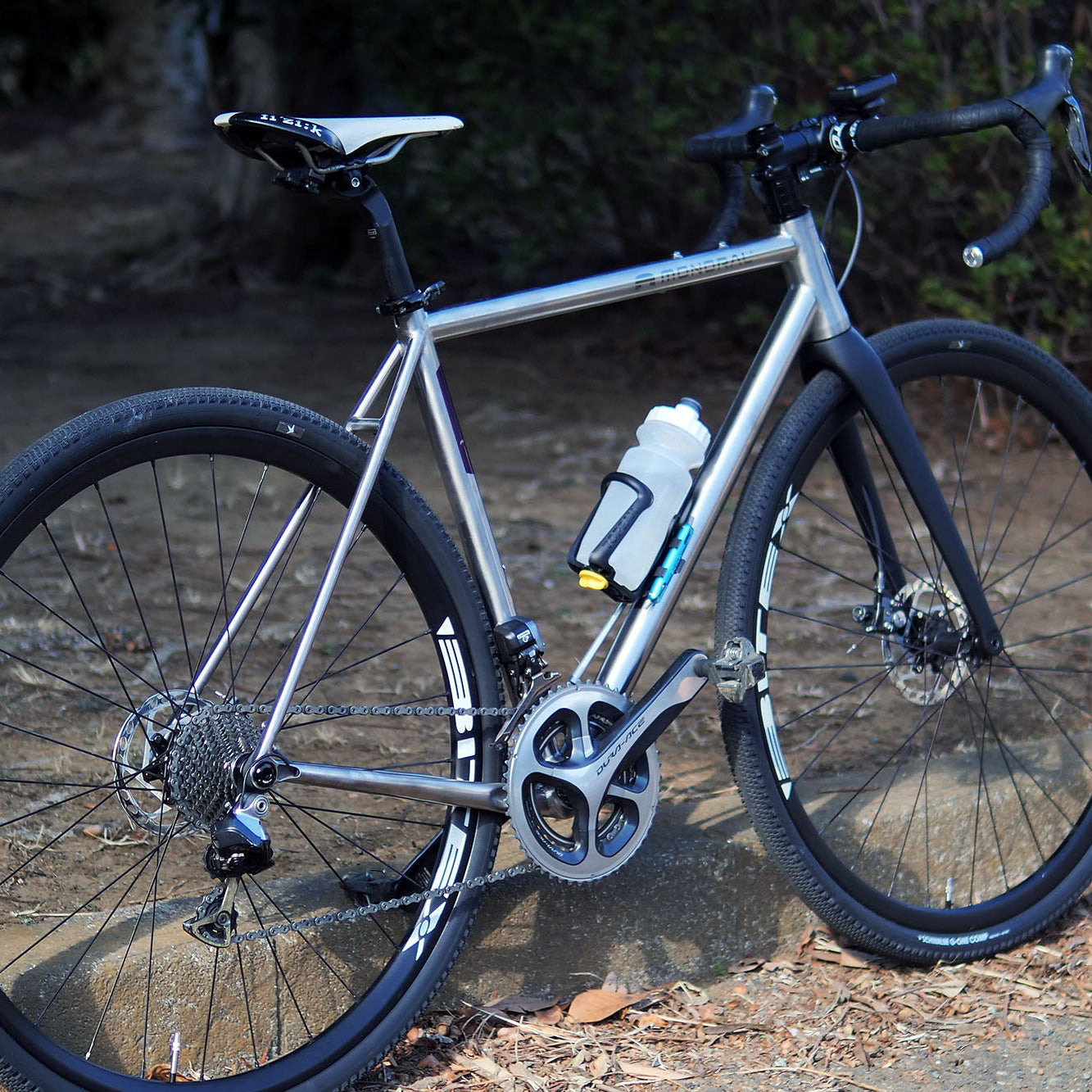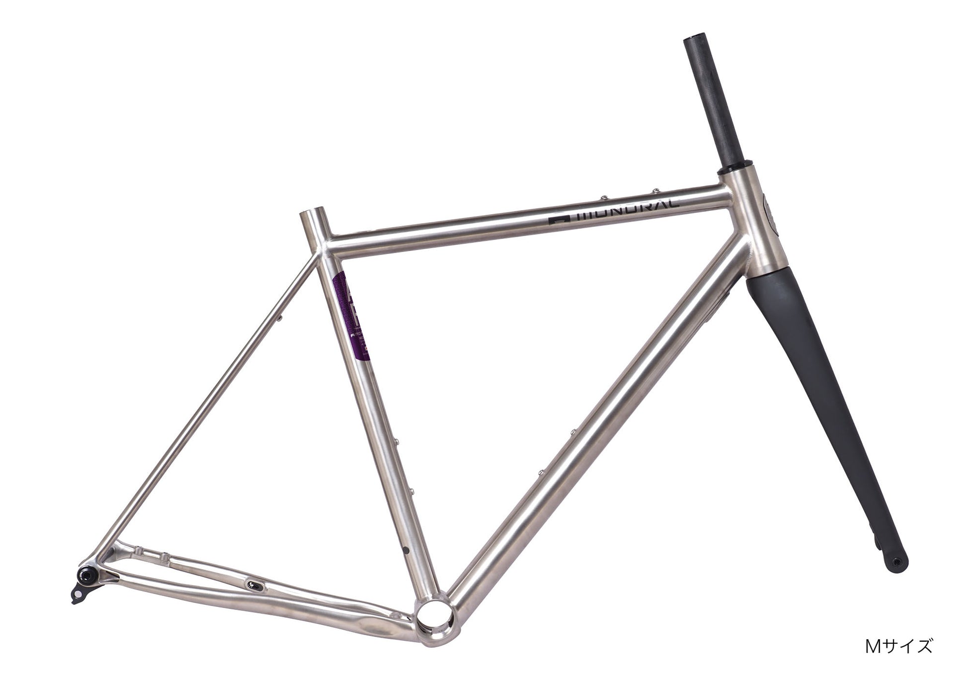 ロードからグラベルまで走破できる汎用性と、ロードバイクらしいクイックさ、高速巡航性を併せ持った一台です。チタンならではの衝撃吸収性と軽快な取り回しをバランスした設計。